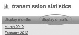 In the transmission- statistic you see the data collected from mailator (Traffic, Total). Also you see, if exist, the numbers of test-sendings, clicks on the subsriber-link and the number of subscribers who have completed the optin-confirmation. Next to the view 'display months' you also can select 'display e-mails'. So mailator outputs the above mentioned figures for each mailing.