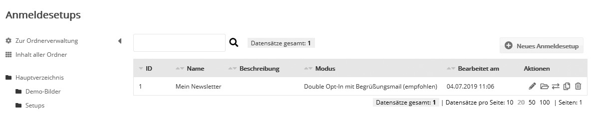 Sollten Sie ein Anmeldesetup in einen Unterordner verschoben haben, gelangen Sie an diese Stelle per 'Ordner öffnen'. Vorbereitungen für ein funktionierendes AnmeldesetupLegen Sie in mailator zunächst alle Zutaten an, die später im Anmeldesetup verwendet werden: